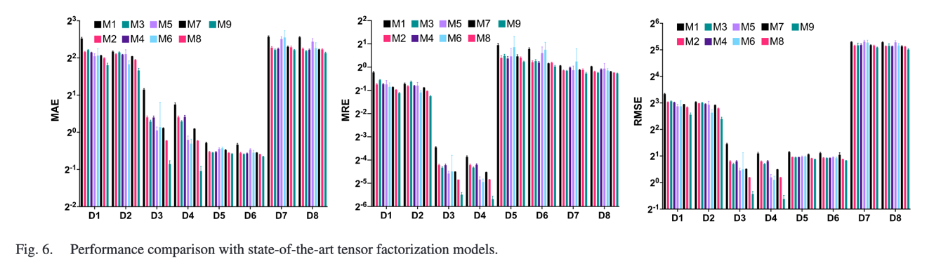 该项研究成果聚焦信息物理系统中高维不完整数据的建模问题,结合张量低秩分解与神经网络理论,提出了一种新型低秩隐因子分解模型——自编码神经Tucker分解(ANTucF),旨在高效挖掘数据中的隐式时空模式。与传统线性张量分解方法不同,ANTucF在Tucker低秩分解框架下引入非线性时空表征机制,综合采用数据驱动的密度导向建模、基于时空模式编码的特征交互张量构建以及自编码潜在交互学习等策略,从而在保持模型结构简洁的同时,通过实现核心张量的零化,显著提升其唯一性与表达能力。实验结果表明,ANTucF在真实数据集的缺失值恢复任务中表现优于多种先进基线模型,并能够捕捉更细粒度的复杂时空动态特征。