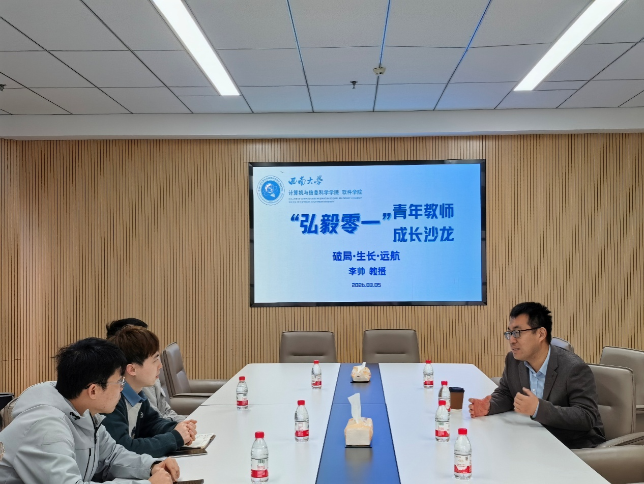 在互动环节,与会教师围绕“智能算法在传统工业场景的落地难点”“青年教师如何构建差异化竞争优势”“国际学术合作资源拓展”等话题提问。李帅教授结合案例逐一解答,强调要以“问题导向”打破学科壁垒,用“机器学习”的迭代思维对待科研挫折,同时主动融入国际学术社群,通过实质性合作提升学术影响力。