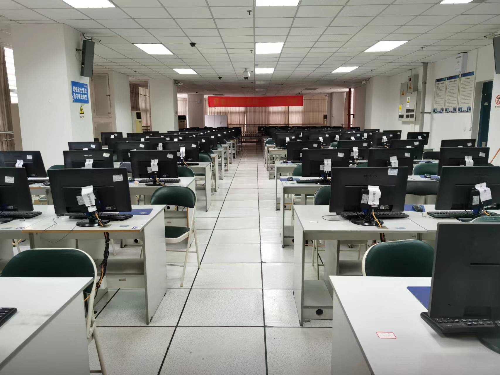 该实验室共有110台学生机,1台教师机,主要面向公共基础学科,提供全校的大学生计算机基础课程平台,另支持南宫娱乐